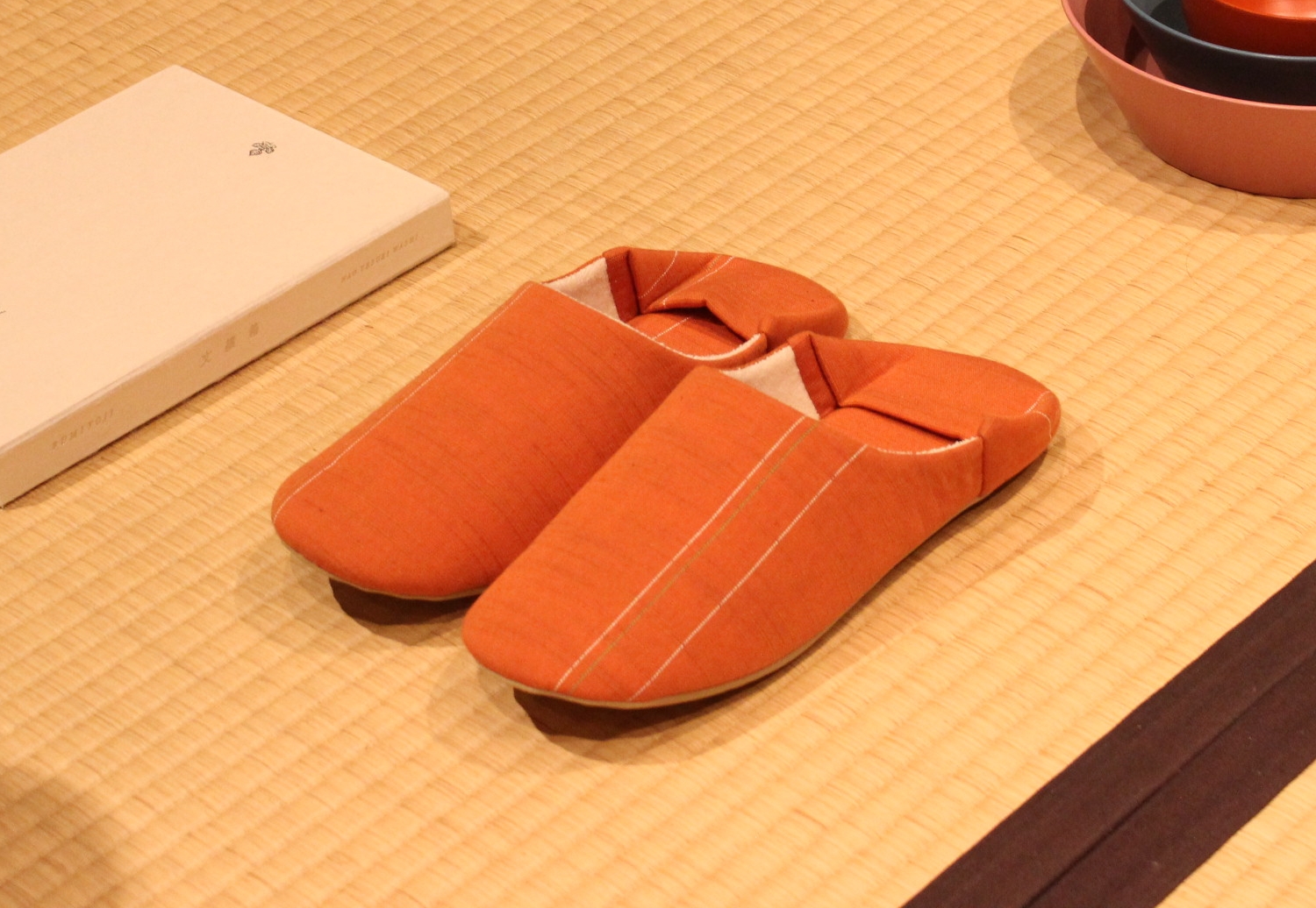 同じく伝統工芸に近づく一歩目としての役割を期待できるのが、会津木綿  青キ製織所(あおきせいしょくしょ)の商品。矢島さんは3,900円(税抜)のスリッパを手にとって、「これなら物についてあまり知らなくても、スリッパはこれくらいの物よね、と気軽に購入できる値段ですよね。手にとってみて『この値段で伝統工芸なんてお得かも』という入口になると思います」とコメントしました。